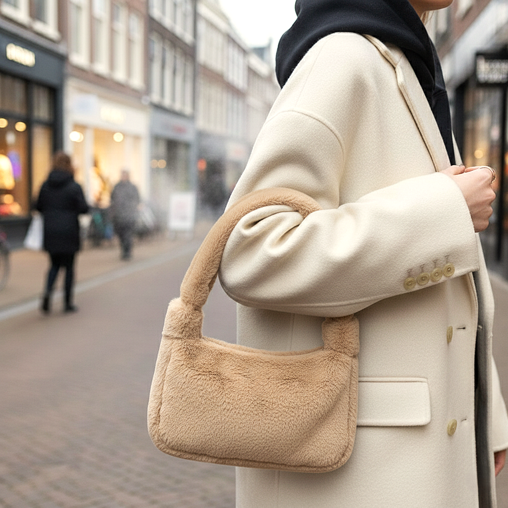 Deze teddy schoudertas combineert comfort met een tijdloze uitstraling en biedt precies genoeg ruimte voor je essentials.