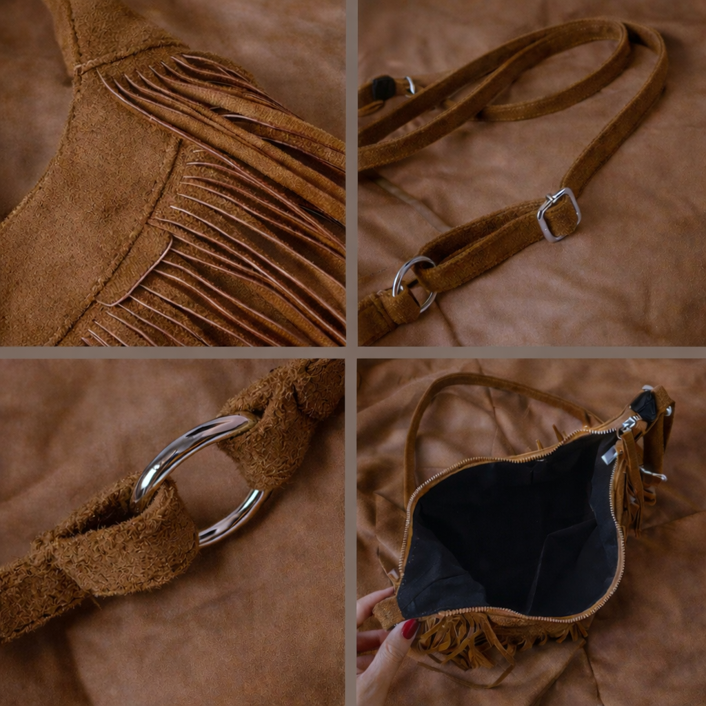 Deze trendy franjetas combineert een bohemian uitstraling met een moderne, stijlvolle look die perfect past bij 2026. De speelse franjes geven elke outfit beweging en karakter, ideaal voor zowel dagelijks gebruik als festivals. Een echte eyecatcher voor vrouwen die modebewust en zelfverzekerd voor de dag willen komen.